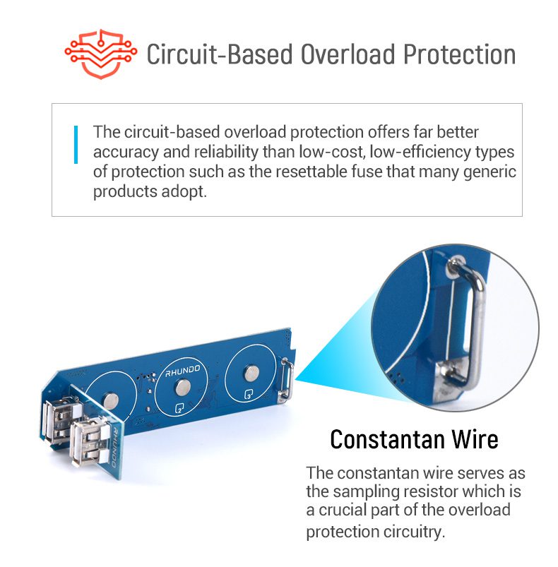 - The screen displays battery voltage, USB output current, timing and temperature;