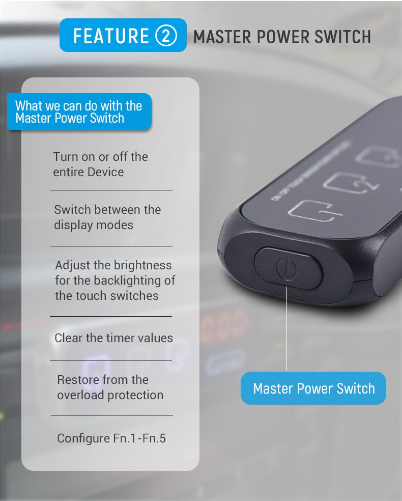 - You can shut on and off the entire device and configure Function 1-6 by using the mechanical master power switch;